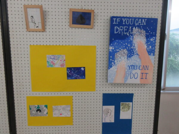 山梨県立上野原高等学校 > 学校行事 > 第41回七葉祭報告~その4~ 展示部門 2021年7月16日カテゴリー: 学校行事 第41回七葉祭報告~その4~ 展示部門 【書道部】 素晴らしい大作! 【美術部】 テーマ『私の頭の中』と題し、見事な作品を発表しました✨ 【学園祭実行委員会&生徒会】 みんなで工夫した七葉祭です。