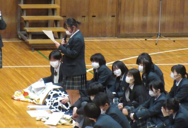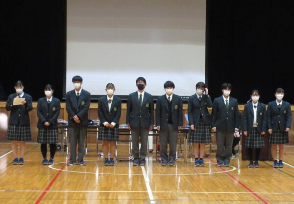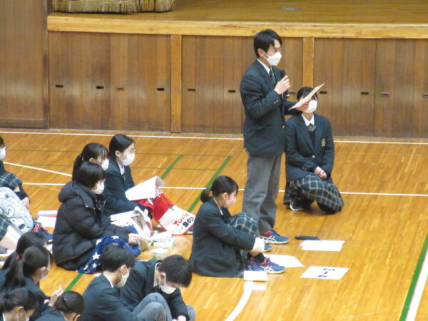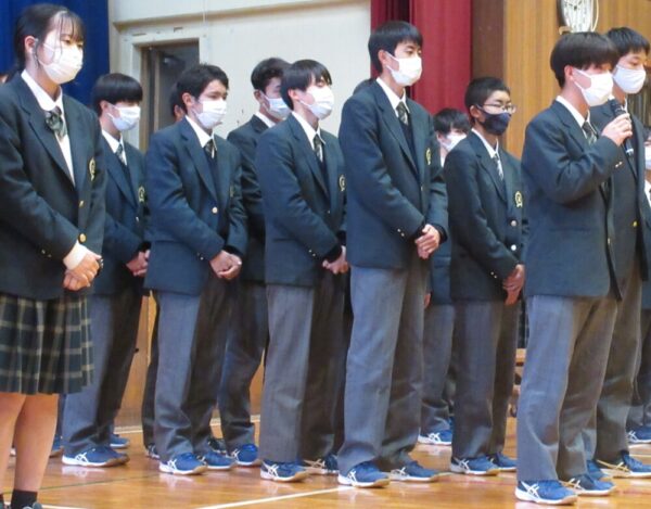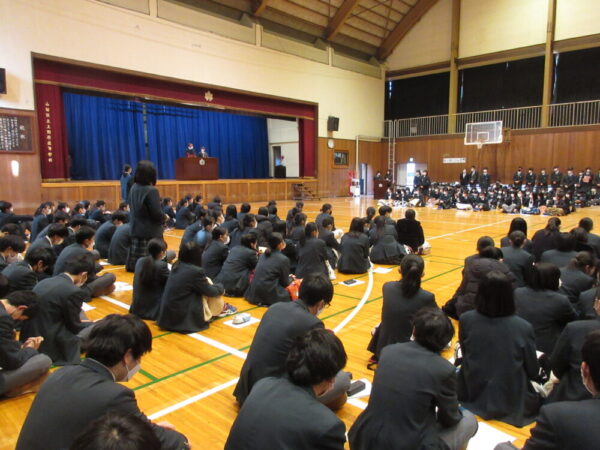 さて、少々前の行事になりますが、12/16(木)に納め式・壮行会・生徒総会を行いました。