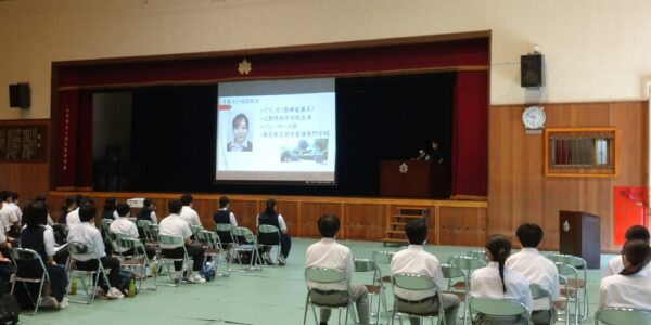 在校生からは,パワーポイント,そして時には動画を使いながら,学校説明を行いました。