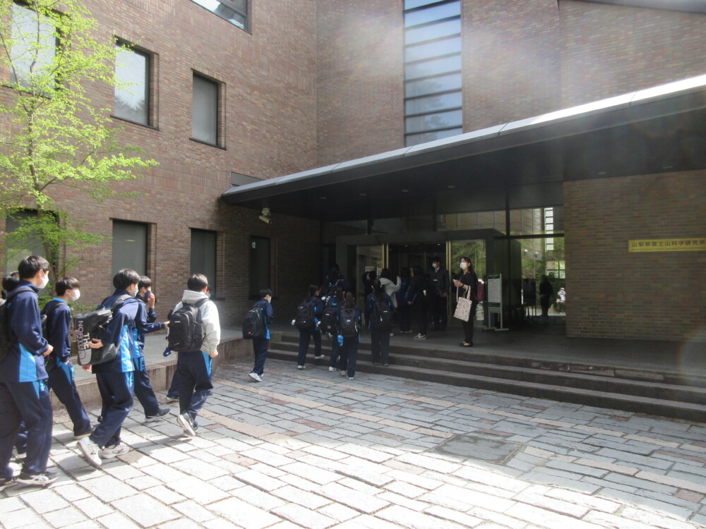 山梨県立上野原高等学校 > 学校から > 1年生が校外学習に行ってきました! 2023年4月24日カテゴリー: 学校から 1年生が校外学習に行ってきました! 4月22日、1年生が校外学習で富士山研究所、パインズパーク、鐘山総合体育館に行ってきました! 科学研究所では、富士山や身近な自然についてフィールドワークや映像資料を見ることで学習することができました。 お昼ご飯は、パインズパークで食べました!天気がとてもよく、富士山もはっきりと見ることができました。 鐘山体育館では、クラス対抗でドッチボールを行いました。多くの生徒の活躍を見ることができました。 1年生は、高校生になって初めての行事でしたが、学習もレクレーションも一生懸命に取り組むことができていたと思います。今後も、学校行事や活動に対し一生懸命に取り組んでいってほしいと思います。