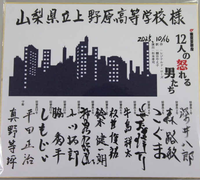 こちらは東京芸術座の皆様よりいただきました色紙になります。大切に保管させていただきます!